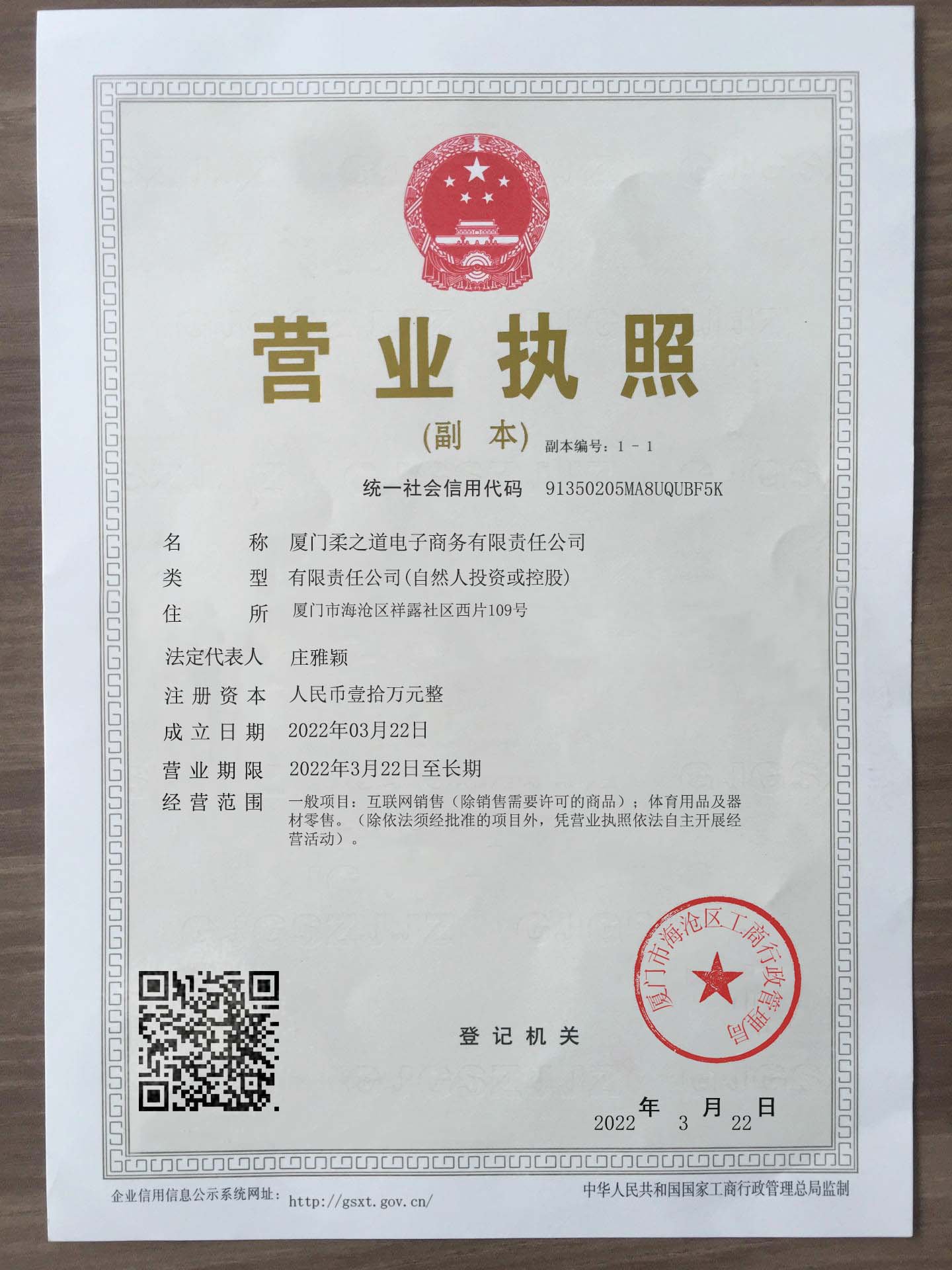 Corporate name:Xiamen Rouzhidao E-commerce Co., Ltd